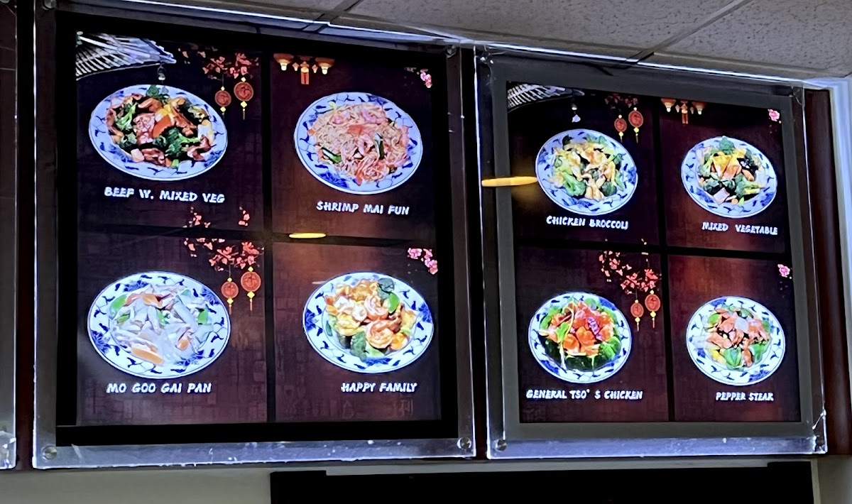 Expect to find a range of options from warm soups like Hot and Sour or Wonton, to well-loved mains such as Orange Chicken, Beef with Broccoli, and Dumplings, available fried or steamed. Light bites and sides like Almond Cookies provide a subtle touch of sweetness to round out the meal.